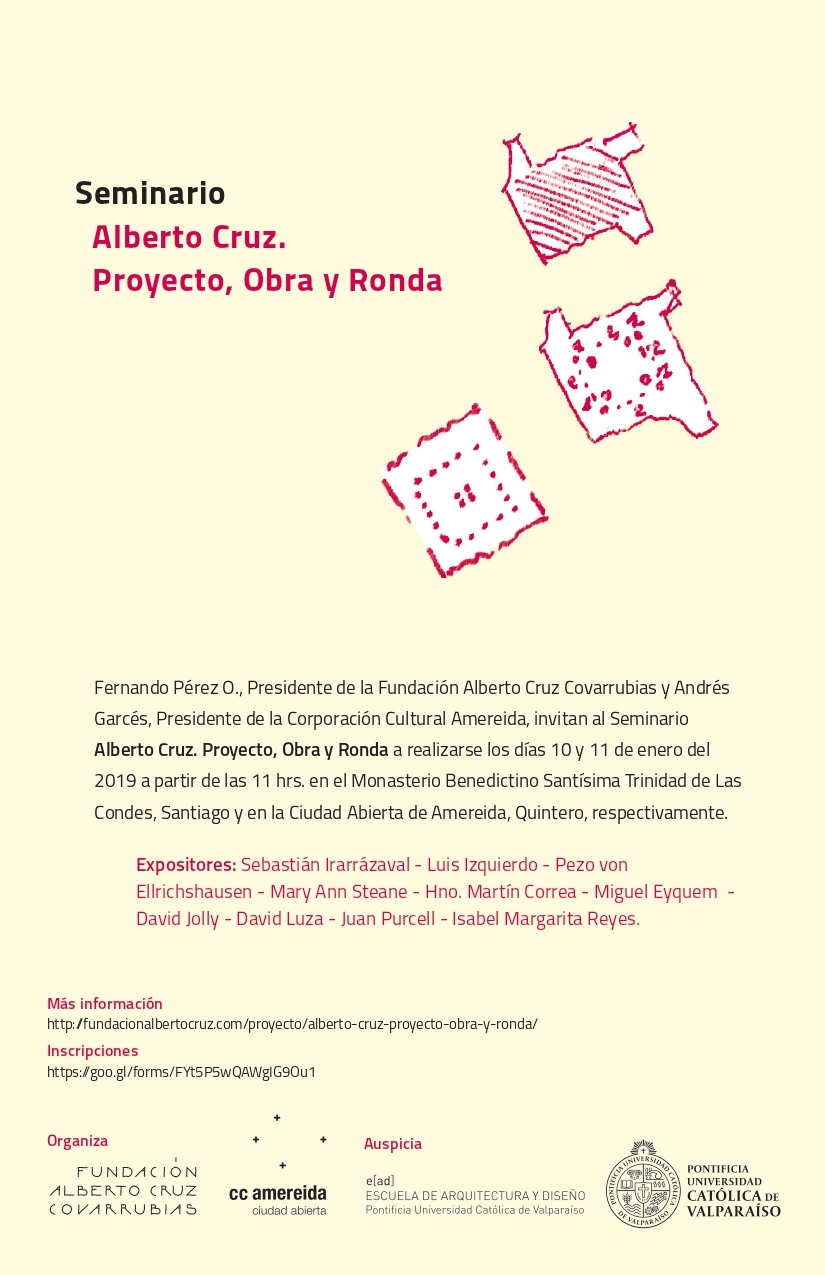 En conjunto con la Corporación Cultural Amereida, la Fundación Alberto Cruz realizó este seminario con el objetivo de interiorizarse y debatir sobre la obra del arquitecto y su influencia en la arquitectura chilena del siglo XX, siendo uno de sus grandes exponentes en esta materia.